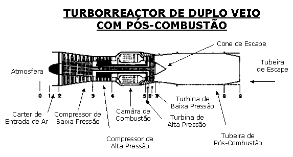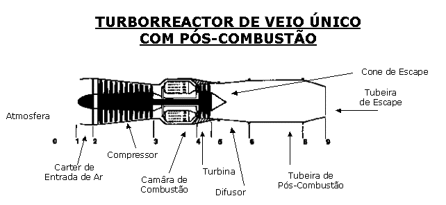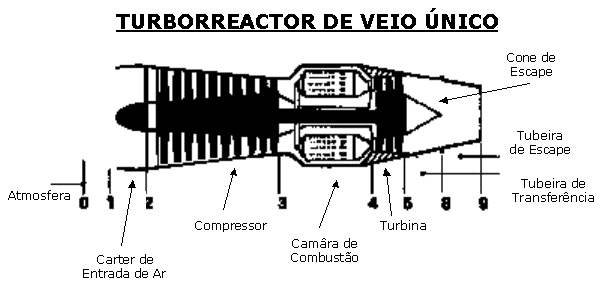 Com o objectivo de prever e estudar o desempenho do motor de turbina de gás, este é visto como um conjunto sequencial de módulos formados por elementos termodinâmicos cujo estudo teórico e unidimensional permite deduzir umas condições a partir de outras. Neste âmbito, o motor é dividido em diferentes secções, correspondentes às fronteiras dos elementos termodinâmicos, desde um ponto situado a montante do motor onde o escoamento é considerado não perturbado (por vezes com velocidade nula) até à saída da tubeira de escape, numa sequência que vai de 0 a 9.